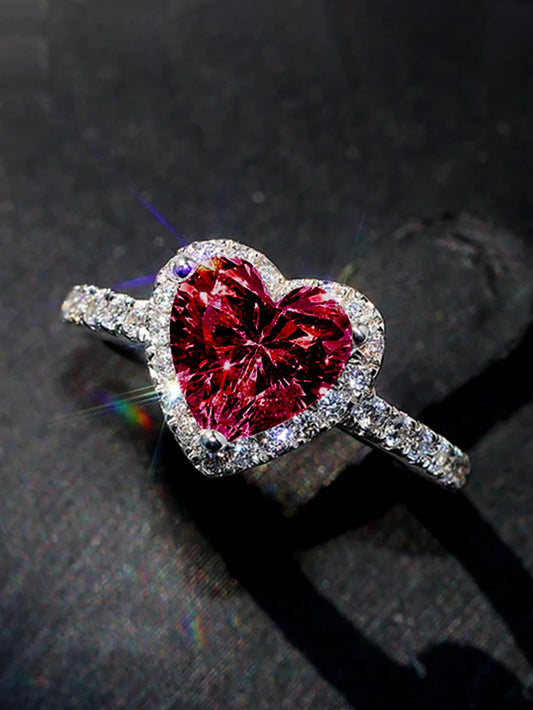 1 PC Romantic Red Heart Cubic Zirconia Ring For Women For Valentine's Day Gift Wedding Engagement Anniversary Party Jewelry
