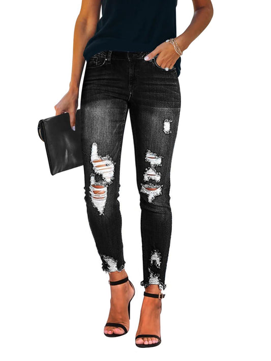 Women's Ripped Skinny Jeans Distressed Stretchy Denim Pants
