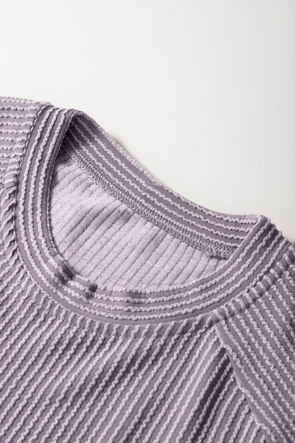 Wild Wind Solid Corded Knit Short Sleeve T Shirt and Wide Leg Pants Set